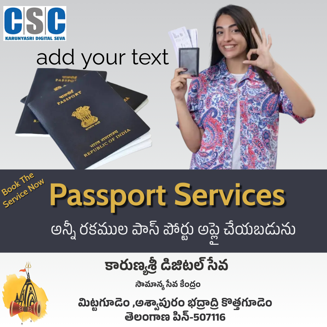 ✨ పాస్పోర్టు కావాలా? పట్టణాలకు ప్రయాణించాల్సిన అవసరం లేదు – కారుణ్య శ్రీ డిజిటల్ సేవ కేంద్రంలోనే మీ పాస్పోర్టు దరఖాస్తు పూర్తి చేసుకోండి!